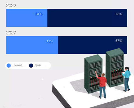 Figura 2. Punët që do të kryejnë makinat dhe njerëzit, në përqindje (Burimi: WEF 2024)2)