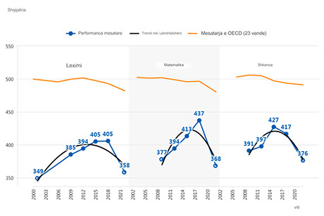Kërkesat që parashtrohen më sipër nuk mbështeten nga rezultate të qëndrueshme dhe në rritje nga matjet e PISA 2022. Rezultatet mesatare të vitit 2022 ishin në rënie në krahasim me vitin 2018 në matematikë, lexim dhe shkencë. Në Shqipëri nxënësit raportuan se kishin shpenzuar dukshëm