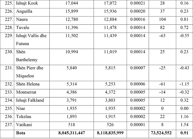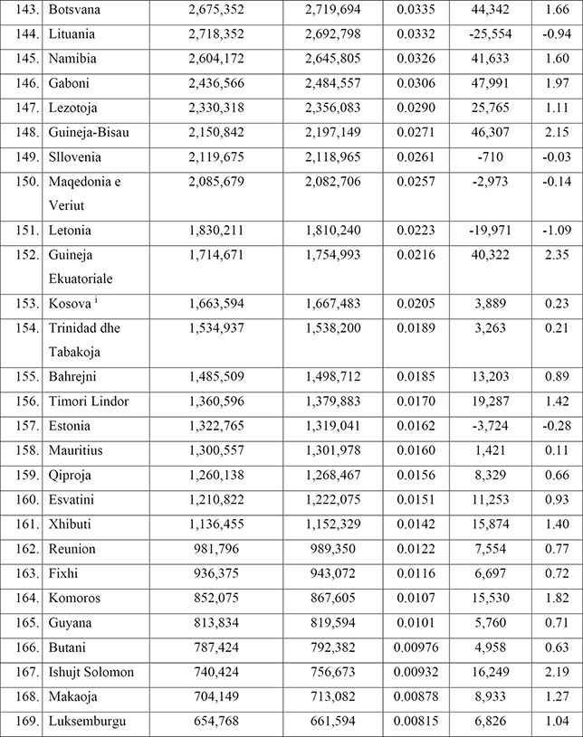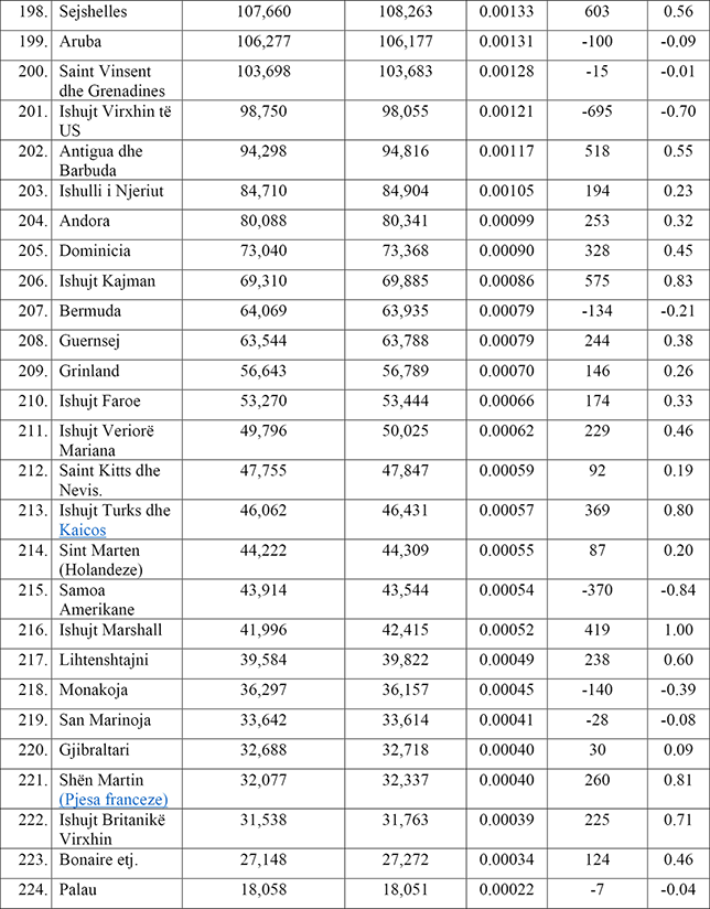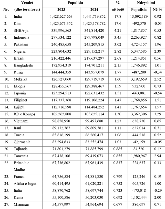 1) Burimi: World Bank, The World Factbook.Date:17 janar 2024. UN (World Population Prospects 2022). Countries by population 2024 - StatisticsTimes.com