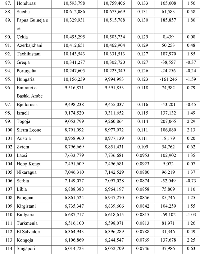 të regjistrojë rënien më të thellë të popullsisë me 804 mijë, pasuar nga Japonia, Kina, Federata Ruse dhe Rumania me rënie prej mbi 200 mijë secila.